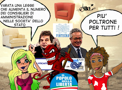 Ed ecco che Brunetta, firmatario della legge assieme a Tremonti, si è ricordato che sono in scadenza un sacco di Consigli di amministrazione di società di proprietà dello stato: l’Anas, la Fintecna, la Fincantieri, l’Enav, e anche Trenitalia. E hanno avuto una fantastica idea: aumentare il numero dei consiglieri di amministrazione, così che se qualche poveretto finisse per essere trombato alle elezioni nonostante gli era stato promesso un posto sicuro in qualche parlamento o consiglio comunale e provinciale, si potrebbe accontentarlo con un posto in qualche CdA. Una norma anti-elezioni e anche un po’ anti-elettori.